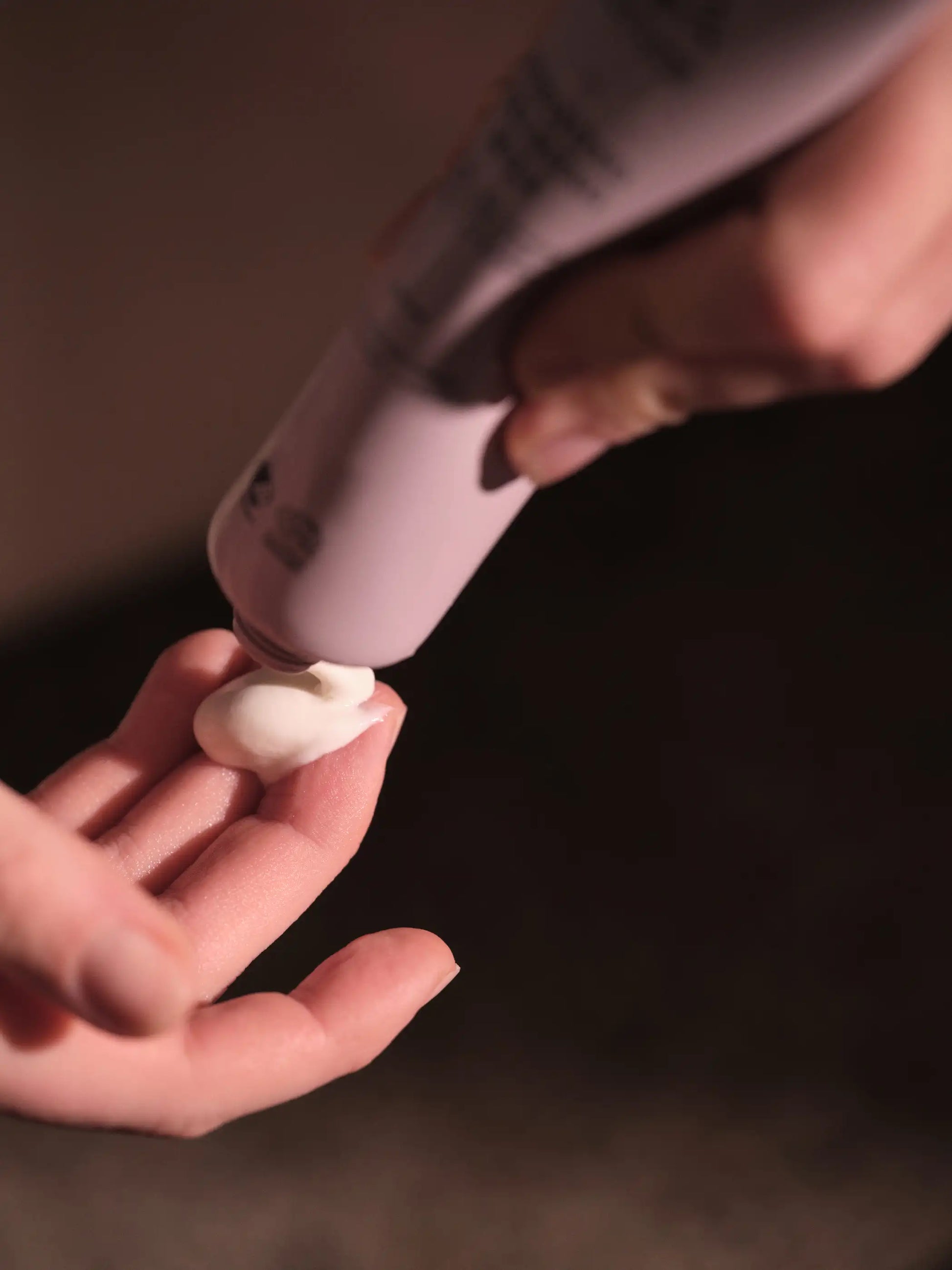• Påfør rensemælken på tør hud med hænder eller en vatrondel